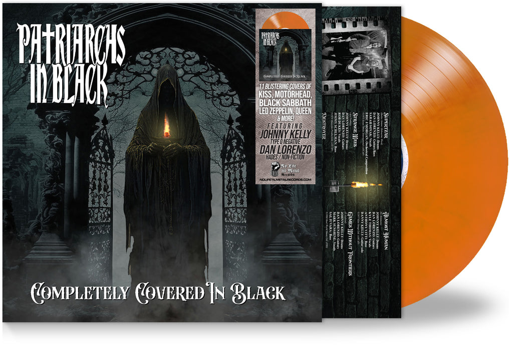 Completely Covered in Black features 11 cuts, as well as a vinyl bonus track of a Patriarchs in Black original song titled, "Show Them Your Power." The CD features 2 bonus cuts including a stunning version of “Kashmir” (Led Zeppelin) and a Patriarchs in Black original titled "Dead and Dying."